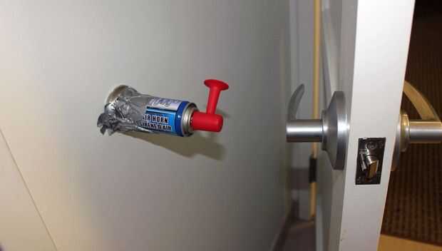 Un clásico! Cinta una airhorn debajo de una silla de oficina o en una pared detrás de una puerta para que cuando la víctima abre la puerta o se sienta, consigue una gran sorpresa. BRRRRR!