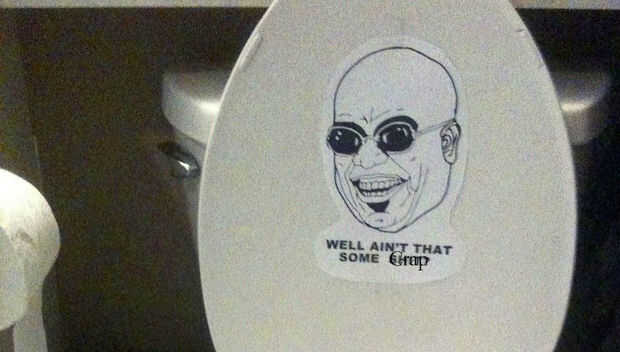 Imprimir una imagen divertida o miedosa y cinta en la tapa del inodoro. Sólo esperar y escuchar su grito de sorpresa.