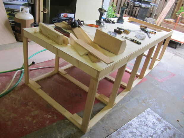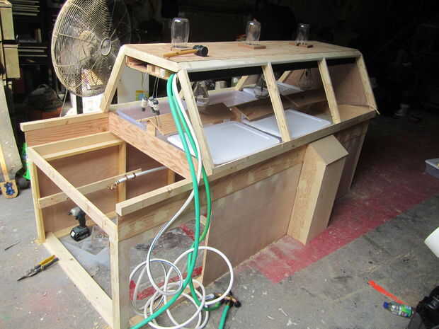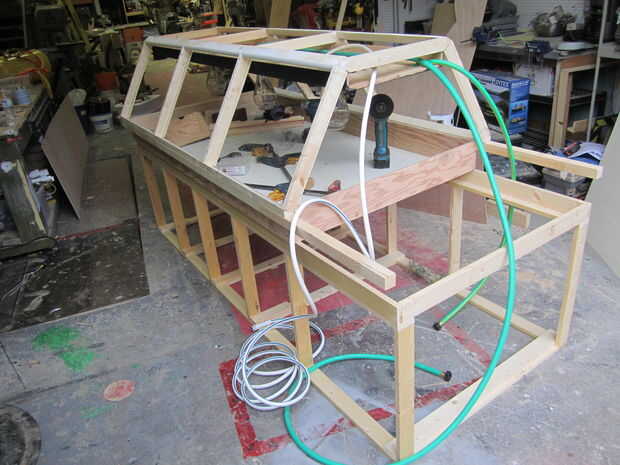 El marco es 1x3s grapas de corona, la parte superior del marco era una ridícula mezcla de mí tratando de cortar ángulos y conseguir que encajan (terminé con ángulos de 30 y 60 grados y tipo de trabajaron).