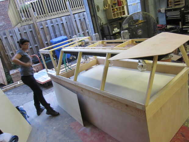 Una vez que la estructura se ensambla el marco con lauan (o virola de 5mm) de la piel, repellado y lo arena. También hizo algunas cajas exteriores de G1S capas por lo que pude poner los botones, altavoces y una cámara GOPRO oculta en ellos.