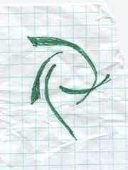 Primero apenas garabateadas ideas y garabatos hasta que tuviera algo que parecía correcta. Yo debo han llenado 10 hojas de papel y sobres de correo basura incontables con espirales y remolinos hasta que me encontré con una forma que sentía que tenía la correcta mezcla de caos y flujo. Entonces después de un poco más refinamiento, que libre construcción de algunos prototipos de papel y fijado a la pared para ver lo que se veía bien, cómo las líneas debían ser, etc. e iteran el diseño otra vez.
