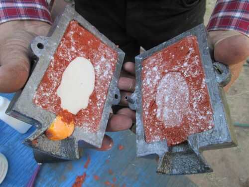 Una vez que la pega completa, se pueden separar la Cope y arrastre.  El talco desmoldante es visible para mostrar que hizo su trabajo de prevención a las dos partes del molde se pegue uno al otro.