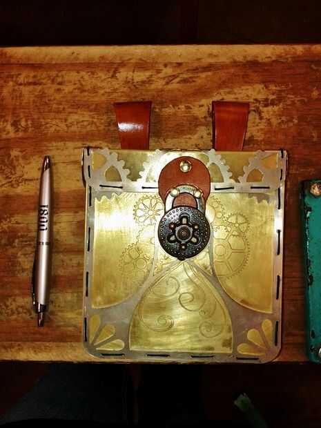 Ahora, el metal se deslustre. Si desea que permanezca brillante, rociarlo wih una clara capa de pintura en aerosol. Si remachada, puede rociarlo una vez que esté todo hecho, pero importa las piezas de cuero y de la cerradura (que estoy seguro que tiene un acabado sobre ella, he tenido una versión plata para las edades y nunca se empañan) el spray puede impedir el giro de la cerradura, así que ten cuidado. Si usted lo había cosido, trate de pulverización antes de coser, ya que el spray puede hacer que el hilo quebradizo.