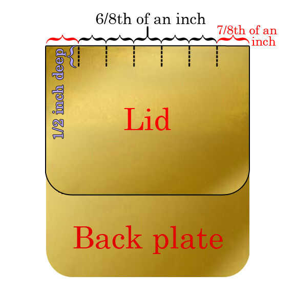 Ahora, le cortamos las pestañas todos juntos. Siguen mi patrón aquí y recorte alternando las pestañas. Puesto que hemos reducido, todo lo que queda por hacer es corte recto a través en alternar las pestañas. Debe encajar bastante bien una vez están todos cortar. Estos eventualmente se ser rizados en los tubos. Si desea menos trabajo, sólo podía hacer 3 pestañas grandes, 2 en los lados de la placa trasera y 1 en el centro de la tapa. O usted podría 19 fichas y estar super loco. No sé por qué decidí hacer 7, pero ahí está.