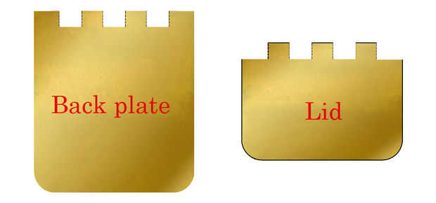 Comenzar pegando la placa trasera y sus Junta, asegurándose de que queden al ras en la parte superior de la tapa. Puede utilizar el cemento de contacto o pegamento de caucho, sólo asegúrese de seguir las instrucciones cuánto tiempo esperar antes de pegar las piezas juntas. Como siempre, usar estos cementos en un área bien ventilada. Nos vamos a pegarles por un corto tiempo, para no ser demasiado liberal, que esto no será permanente. Deje que las piezas a secas, según la botella y luego medir hacia fuera las lengüetas.