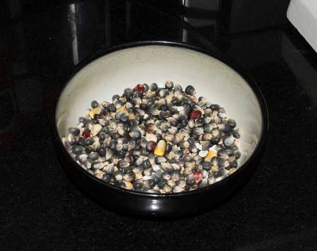 Mi maíz de elección es orgánico maíz azul de corazón. Las piezas de azul no que puedes ver son los restos de maíz de algunos Mandan la novia de mi grano local CSA (Valle del pionero). estaban en el depósito de maíz.