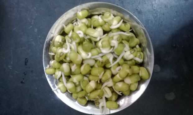 Brotado moong y postres de almendra tostadas (1 / 7 paso)