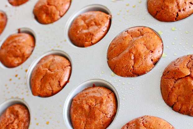 6. cuchara aproximadamente 1 cucharada de masa en cada molde de Magdalena y hornear durante 15-20 minutos, o hasta que un palillo insertado en el centro de un brownie, éste salga limpio.