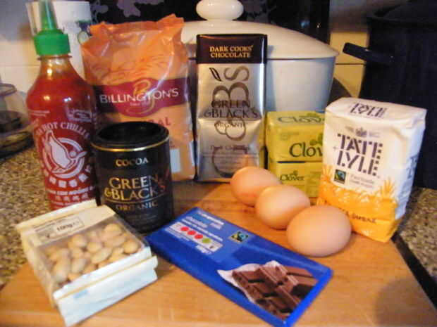 y 100 gramos de relleno de su elección (yo usé chips de chocolate con leche mitad y mitad picadas almendras blanqueadas).