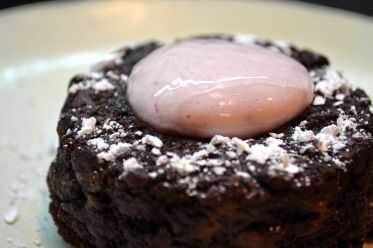 parcelas de raviolis de chocolate oscuro rebosante de mascarpone de chocolate blanco y frambuesa, cubierto con coulis de frambuesa champagne y servido con helado de vainilla! Totalmente indulgente pero perfecto para el entretenimiento!Bueno, esto ha