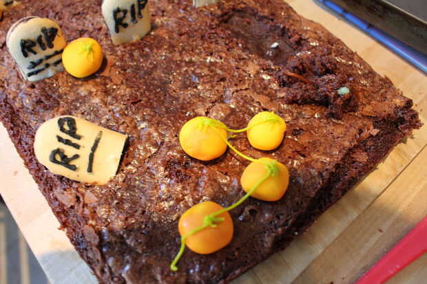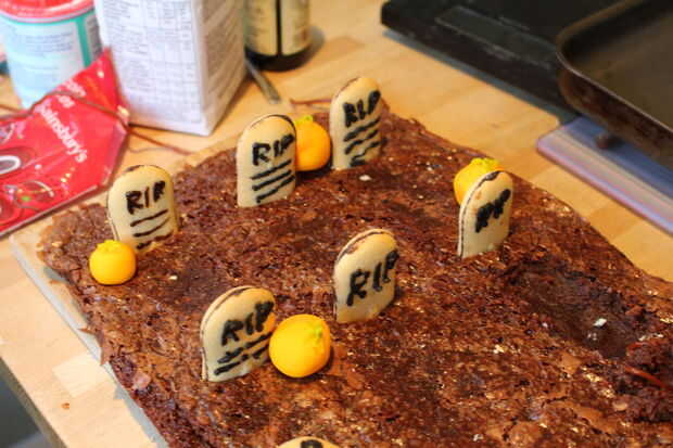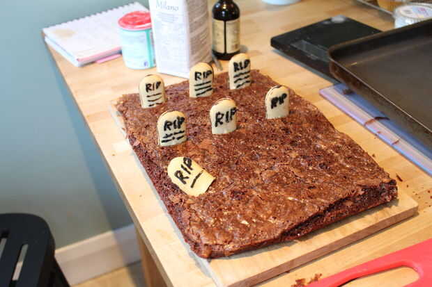 Para agregar las lápidas se ranura en el brownie (que simple)