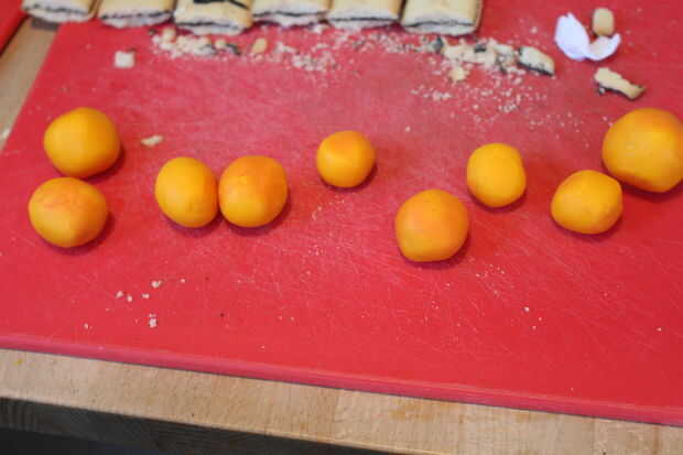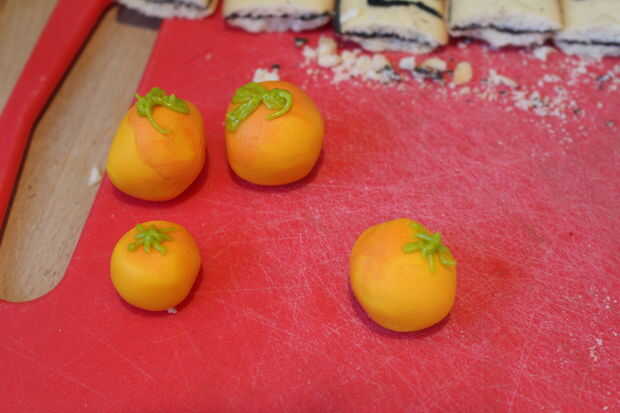 Para las calabazas againIi usado tienda fondant había hecho en bolas little(ish) y poner glaseado verde tallos en la mitad de ellos. Traté de caras pero realmente no funcionan.