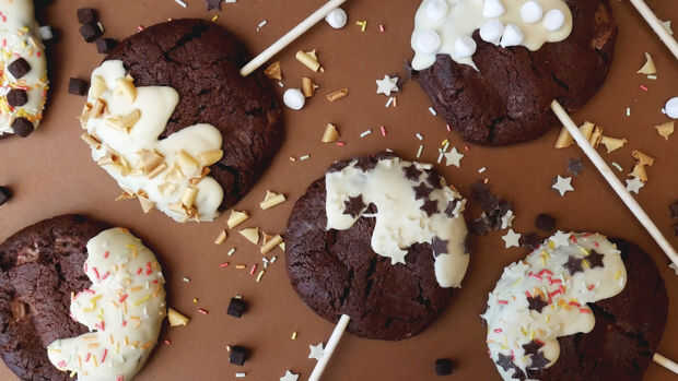 BROWNIE de CHOCOLATE TRIPLE FUDGE SUNDAE COOKIE POPS (4 / 4 paso)