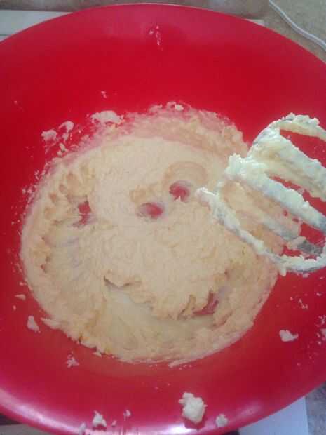 Primera crema con una batidora eléctrica el queso crema y mantequilla. Una vez Lisa se añadir la cucharadita de extracto de vainilla y batir en la yema de huevo. La mezcla debe resultar como se muestra.