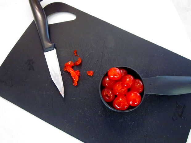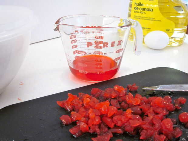 • jugo de cereza de marrasquino para reemplazar el agua sugerido por el cuadro (mi caja dijo 1/4 de taza)
