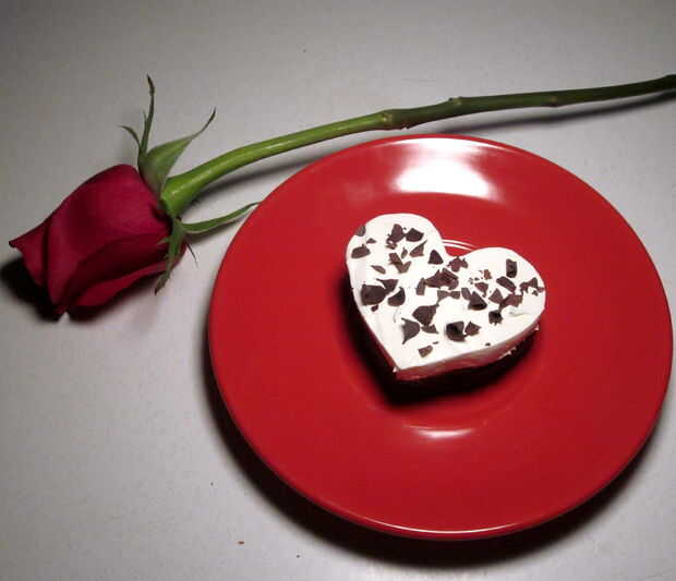 Coloque el corazón Cool Whip directamente sobre tu brownie después de cortar con el cortador de galletas. Espolvorea unas virutas de chocolate encima y disfruta!