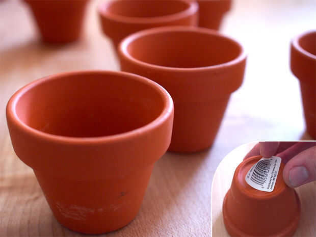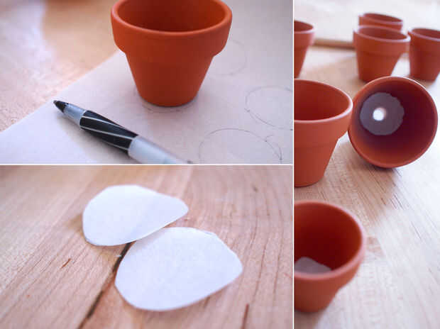 Colocar los recortes de círculo de papel de pergamino dentro de las macetas, luego cubrir abundantemente el interior de cada olla con manteca de cerdo. Alternativamente puede línea dentro de cada pote con papel pergamino.