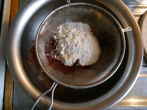 En un recipiente diferente mezclar la harina y el cacao, poniendo a través de un tamiz. Dará a la torta una agradable textura esponjosa.