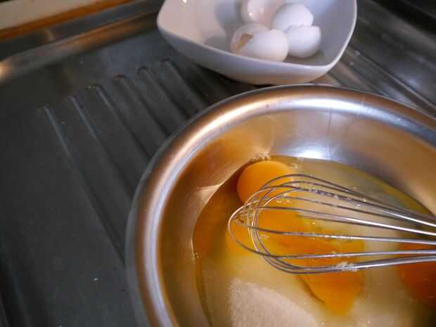 Poner los huevos y el azúcar en un cuenco y mezclar con un batidor de huevos hasta they´re espumoso. Luego añadir el chocolate que debe ser tibia en más por ahora. Por último añadir la mezcla de harina y cacao y agitar todo hasta they´re no más grumos. Luego Vierta en la bandeja y ponerlo en el horno durante 20 minutos.