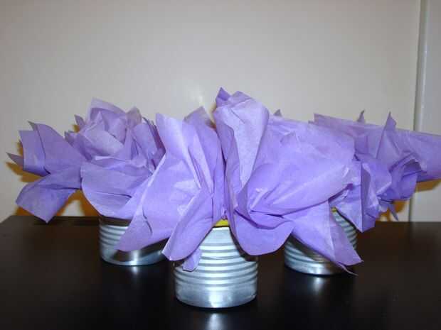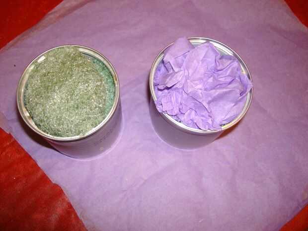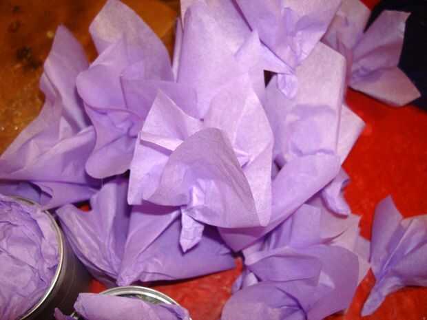 Cubrir con el papel de tejido de scrunching el papel en la parte superior de la lata.