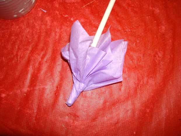 2 y colocar el palillo en el centro del papel y la giro para formar una flor.