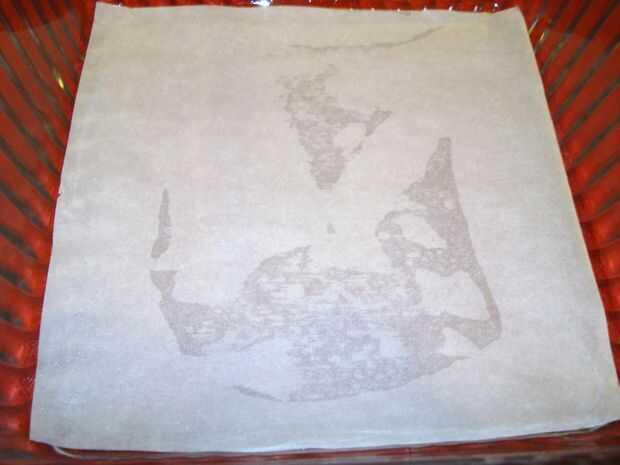 Corte papel pergamino el tamaño de la parte inferior de la bandeja.