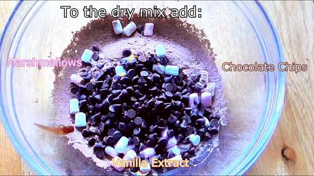 • Para la mezcla de harina agregar los malvaviscos, Chips de Chocolate y extracto de vainilla