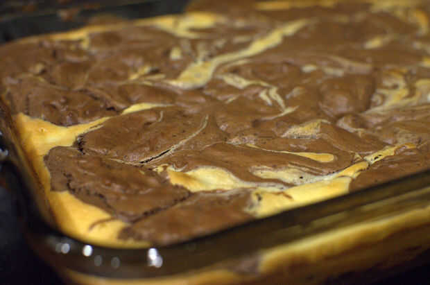 Ingredientes:Mezcla de Brownie1/4 de taza de agua2/3 de taza de aceite vegetal2 huevosJarabe de Chocolate HersheySalpicaduras del arco irisLo que usted necesita:HornoGuantes para el hornoCuchara deTazón de fuente1/3 taza1/4 tazaPanAerosol o CriscoCuc