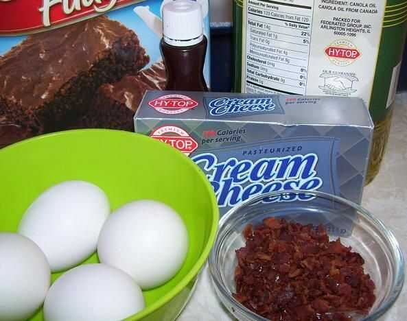 Tocino - uso aproximadamente 1/4 taza presentación preestablecida de tocino o cocina unos 4 tiras de tocino hasta muy crujiente. Desmenuzar o picar el tocino en trozos pequeños para que la bondad de balcón se distribuye a lo largo de los brownies.