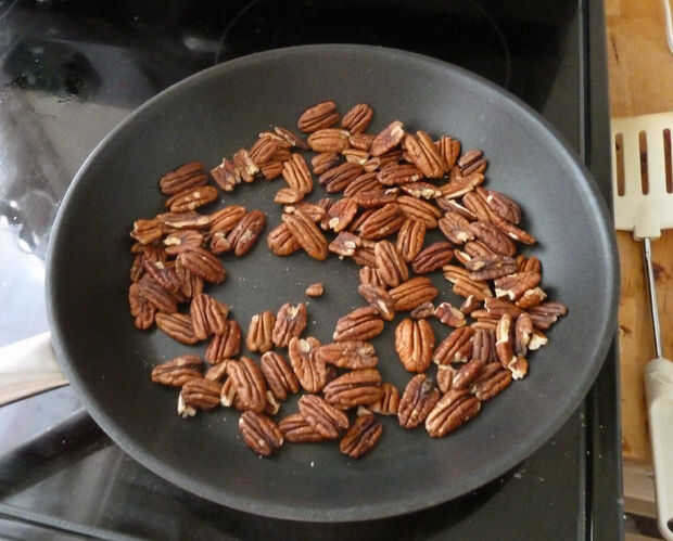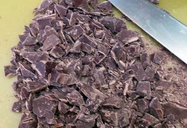 Tostar las nueces y picar el chocolate.