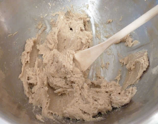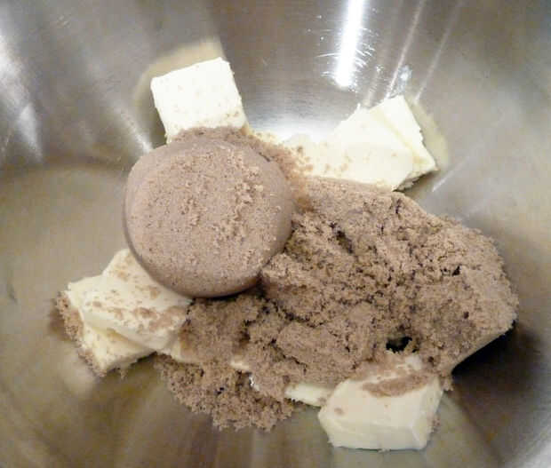 Cortar la mantequilla en trozos y mezclar con el azúcar.