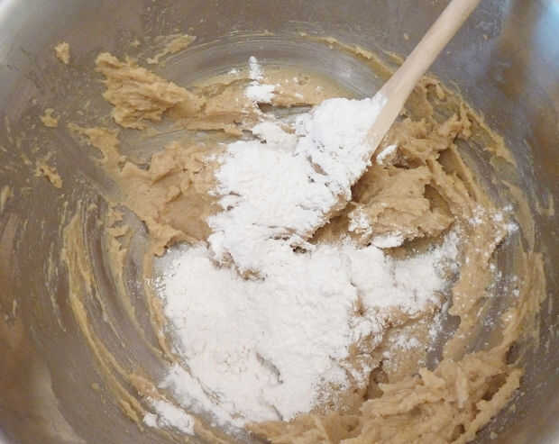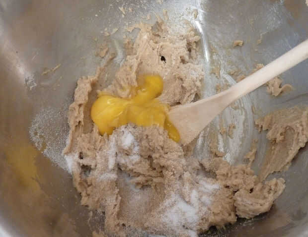 Añadir las yemas de huevo y se combinan, uno a la vez.