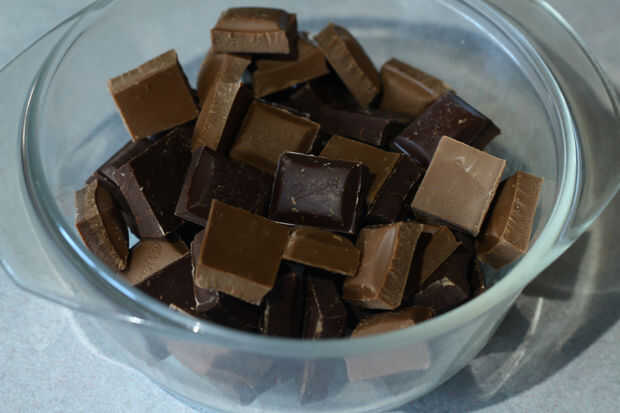 Brownie de chocolatePaso 1: Paso 1: ingredientesIngredientes:185g de mantequilla sin sal –Chocolate negro – 100gChocolate con leche – 85g-250g de azúcar impalpableHuevos grandes-3Harina – 110gExtracto de vainilla-1Tea cucharaNueces-140 g (opcional)Pa