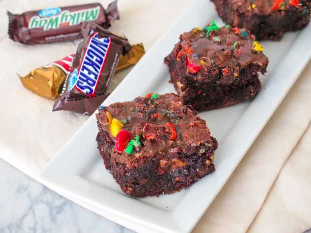 Candy bar brownies combinan deliciosos brownies y caramelo, con sabrosas golosinas mini. Este convite estupendo chocolate es difícil pasar por alto!