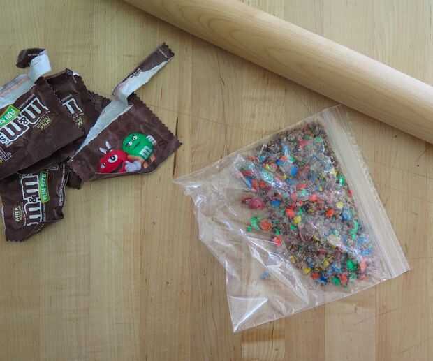 Rompieron mi M & M en una bolsa porque no quería que las enteras encima de los brownies. Por alguna razón no siento tan bonita para mí.