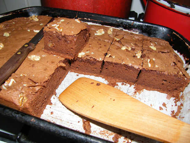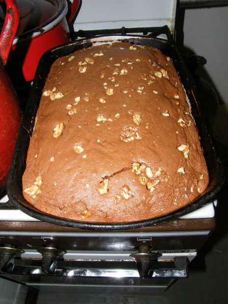 Vierta la 1/2 masa en pan, espolvorea con nuez picada y faneca el resto de la encimera la masa y espolvorear con nuez más