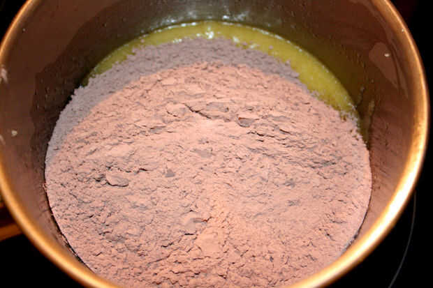- Agregar el cacao y seguir revolviendo para que la mezcla no atrapa