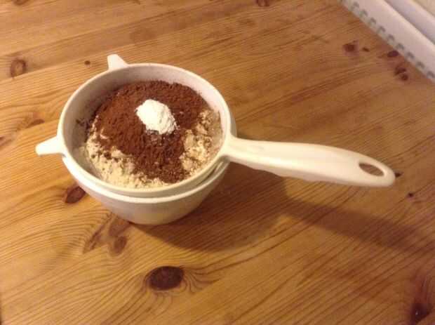 Paso 5: Tamizar la harina, el cacao y el polvo de hornear.