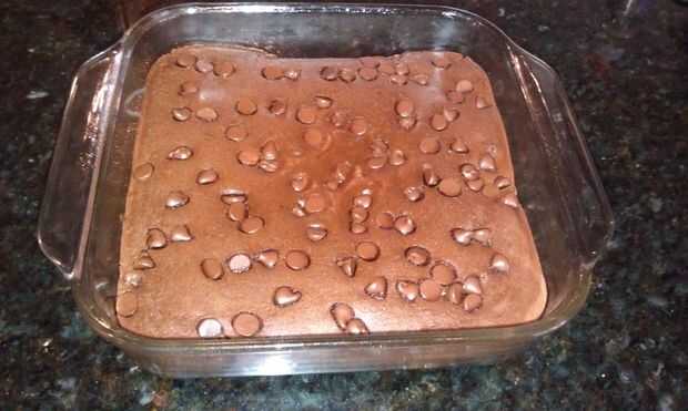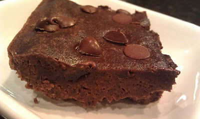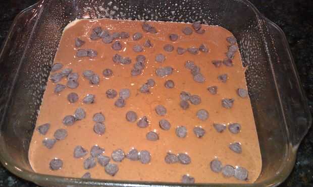 Cosechadora de frijol negro con sal en una licuadora; mezcla hasta que esté suave; Vierta la mezcla en el molde para hornear preparado. Espolvorear con trocitos de chocolate y luego cocer en el horno hasta que tirón de los bordes de la cacerola y el centro es (unos 25-30 minutos). Deje que se enfríe durante 15 minutos antes de cortar y retirar de la sartén.