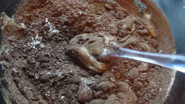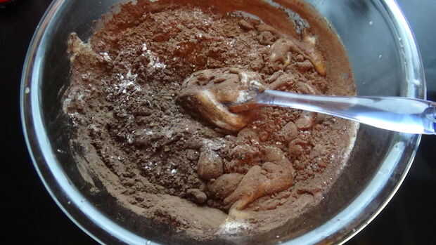 Lindo y suave, estas mordeduras de brownie son fáciles de hacer y seguro que por favor!Rendimiento: hace 20 picaduras (yo usé una lata mini de la Magdalena).Paso 1: ingredientes -1/2 taza de agua hirviendo-1/2 taza de cacao en polvo sin azúcar-1-1/2