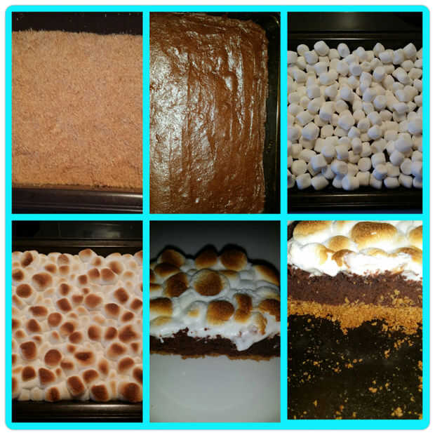 Vierta el C. 3 de melcocha encima de los brownies. Poner el horno en broil. Coloque usted su brownie en el horno durante 1 minuto. Después de 1 minuto hacia los brownies la rejilla inferior durante 1 minuto.