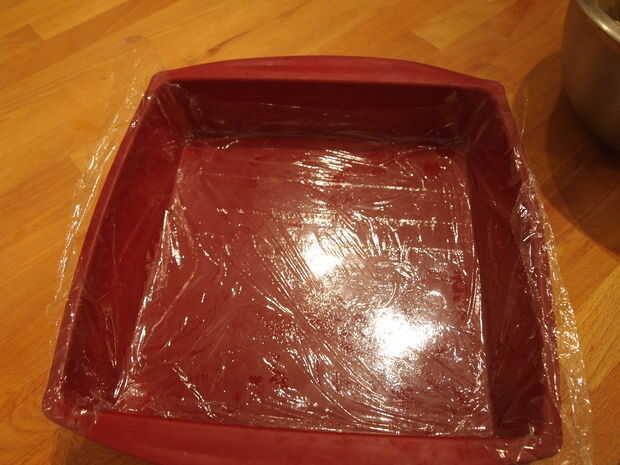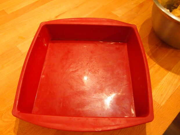 Tomar el molde para hornear de elección, usar una bandeja para hornear de silicona 8 x 8.