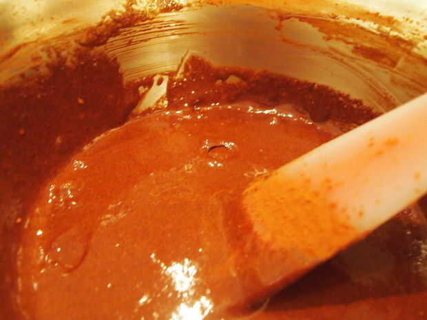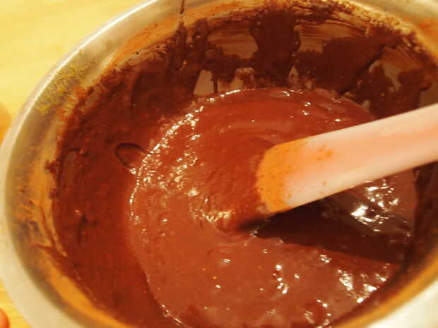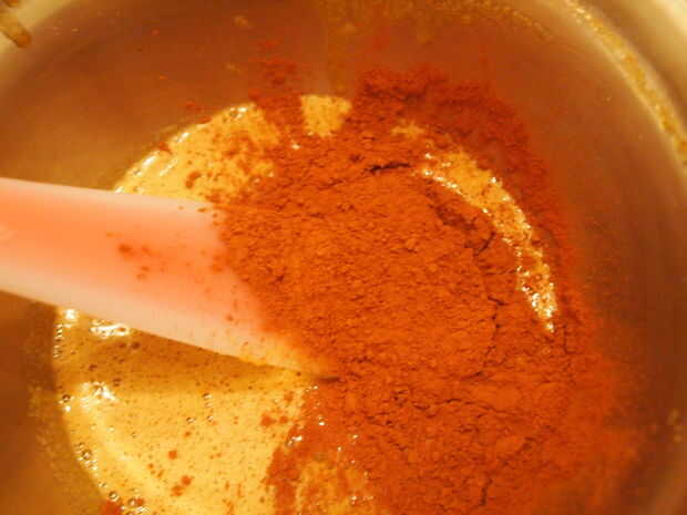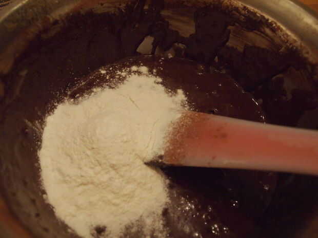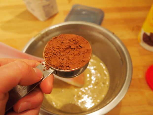 Una vez que todo el cacao se añade luego puede añadir 1/3 taza de harina o sustituto de la harina.