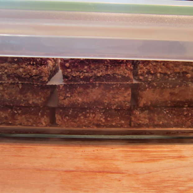 Almacenan en una estratificación de recipiente hermético con papel sulfurizado para que no peguen brownies.