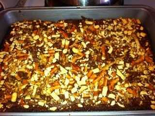 Que engañado y utilizado dos paquetes de mezcla de brownie de chocolate, aunque trabajaría cualquier receta de brownie doble