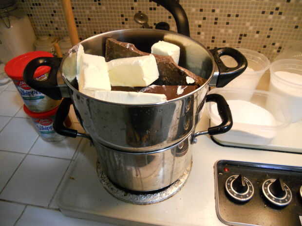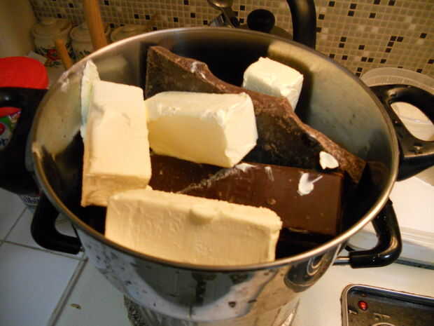 Estos brownies son buenos con o sin cerezas glace.Paso 1: método chocolate amargo de 1 oz (2 plazas)1/2 c de mantequilla (sin sal, a temperatura ambiente) o margarina2 huevos batidosazúcar c 11/2 c de harinaHelar:1 1/2 c de azúcar glas3 cucharadas de