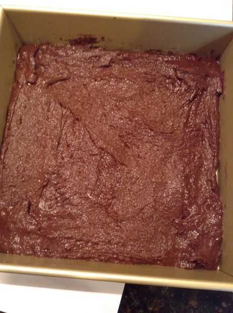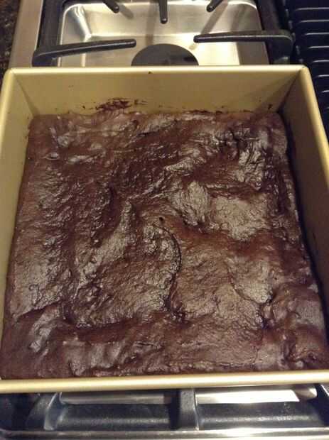 Extender la masa en la sartén. Esta masa es muy gruesa, así que intenta su mejor para difundir por todas partes. Trate de hacerlo como como posible. Hornear durante 8-12 minutos. Cocer al horno más cercano a 8 para un brownie masticable y cerca de 12 para un brownie cakier. Utilice el palillo de dientes para la prueba de cocción. Para mejores resultados, hornear hasta que no las migas quedan en el palillo de dientes.