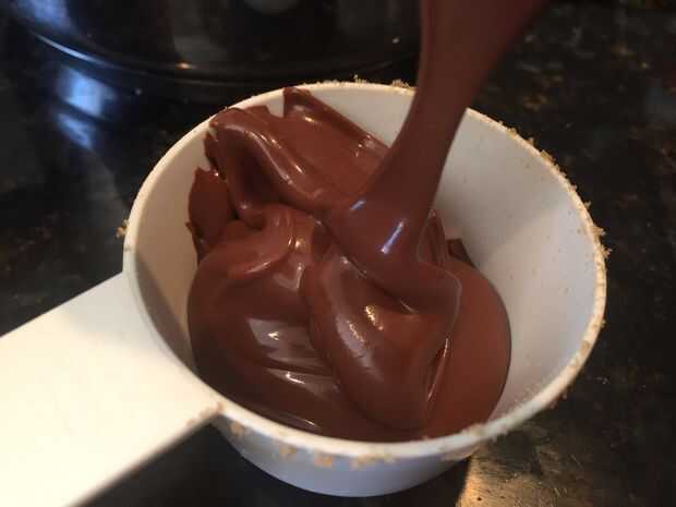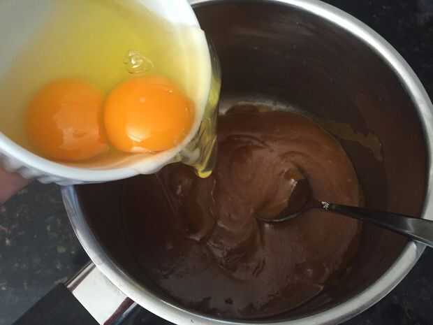 Una vez enfriada la mezcla de mantequilla y azúcar, agregue los huevos uno a uno y revolver después de cada adición. Luego agregar la vainilla y Nutella y revolver. Por último agregue la mezcla de ingrediente seco asegurándose de que no queden grumos.