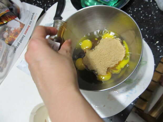 a continuación batir sus huevos, el azúcar y la vainilla en otro recipiente