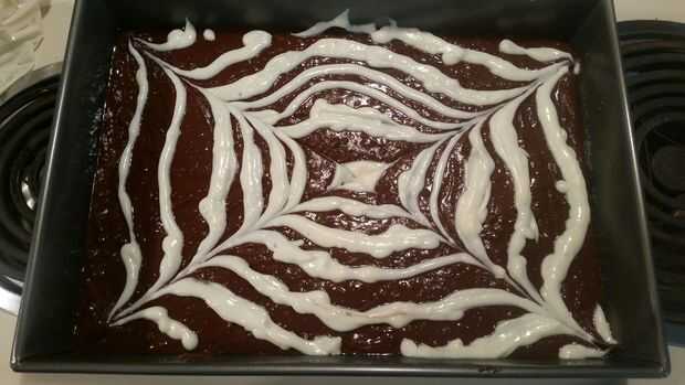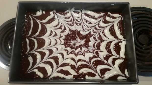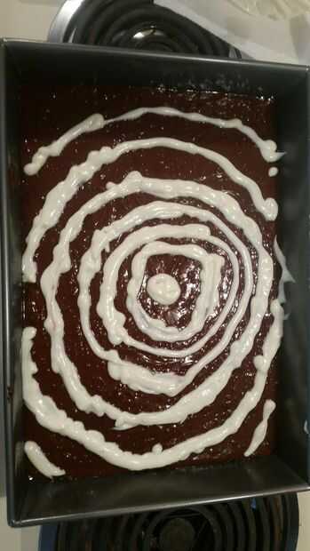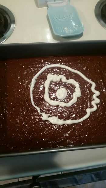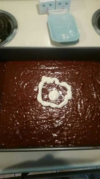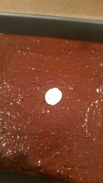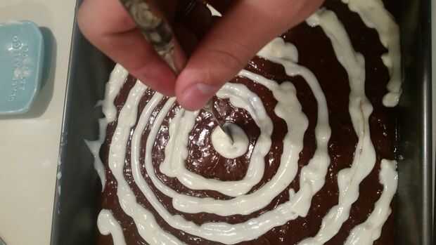 Luego aplique un círculo en el centro de la mezcla de brownie.